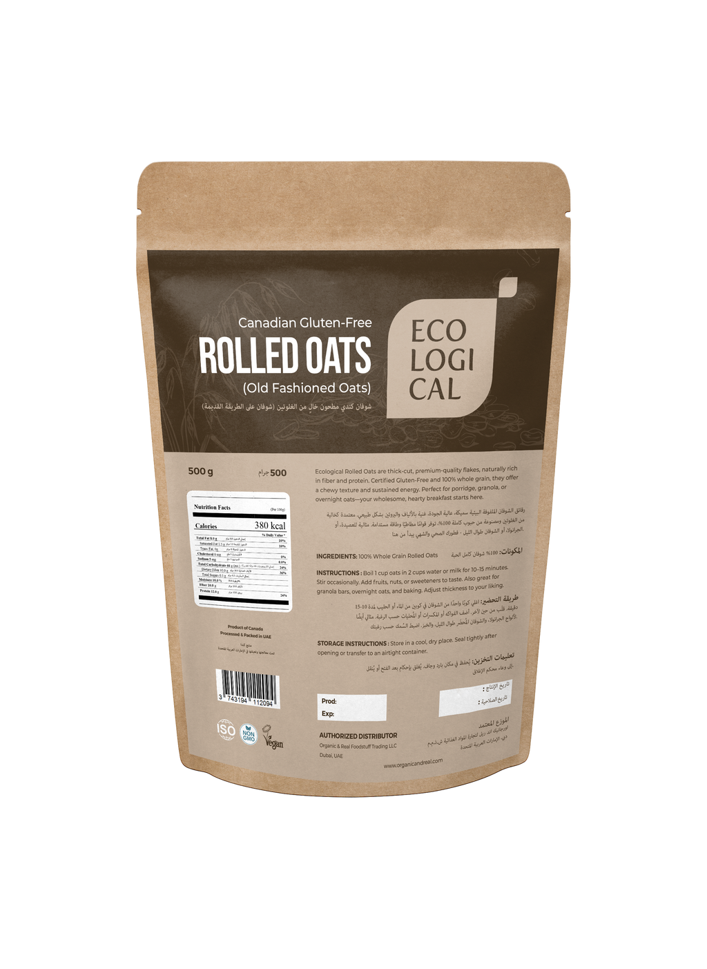 ECOLOGICAL Rolled Oats are thick cut, premium quality flakes packed with natural fiber and protein. Certified gluten-free and made from 100% whole grain, they provide a satisfying, chewy texture and sustained energy. Perfect for porridge, granola, overnight oats and baking applications ~ your wholesome, hearty breakfast starts here.