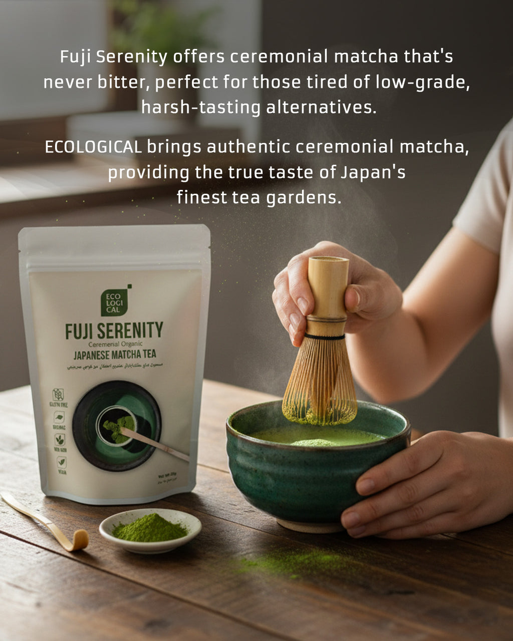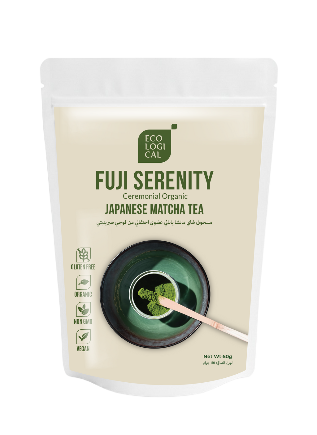 ECOLOGICAL Fuji Serenity Ceremonial Matcha is crafted from the finest first-harvest tea leaves grown in Japan’s celebrated Mount Fuji region. Shade-grown for weeks to enhance natural sweetness and umami, these leaves are hand-selected, steamed, and stone-milled into an ultra-fine, vibrant green powder. Designed for the traditional whisked experience, it delivers a smooth, velvety texture with a deep, lingering flavor—the pinnacle of Japanese tea artistry for your daily ritual.