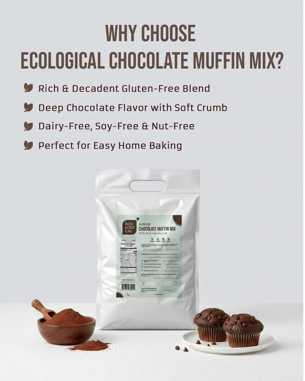 Ecological Gluten-Free Chocolate Muffin Mix is a rich and indulgent gluten-free blend crafted to deliver deep chocolate flavor and a soft, moist crumb. Carefully formulated for consistent results, this mix makes it easy to bake delicious chocolate muffins at home.