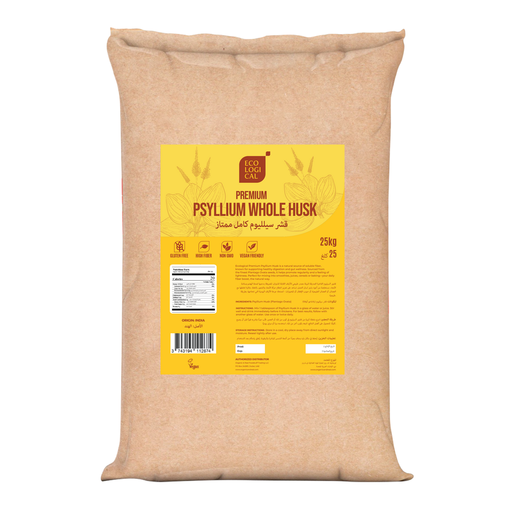 Introducing our premium ECOLOGICAL Organic Psyllium Husk Whole, 25 KG — a 100% natural, high-fiber superfood designed to support digestive wellness and overall gut health. Sourced from the finest Plantago ovata seeds, this soluble fiber powerhouse helps promote healthy digestion, regularity, and a light, balanced feeling throughout the day.
