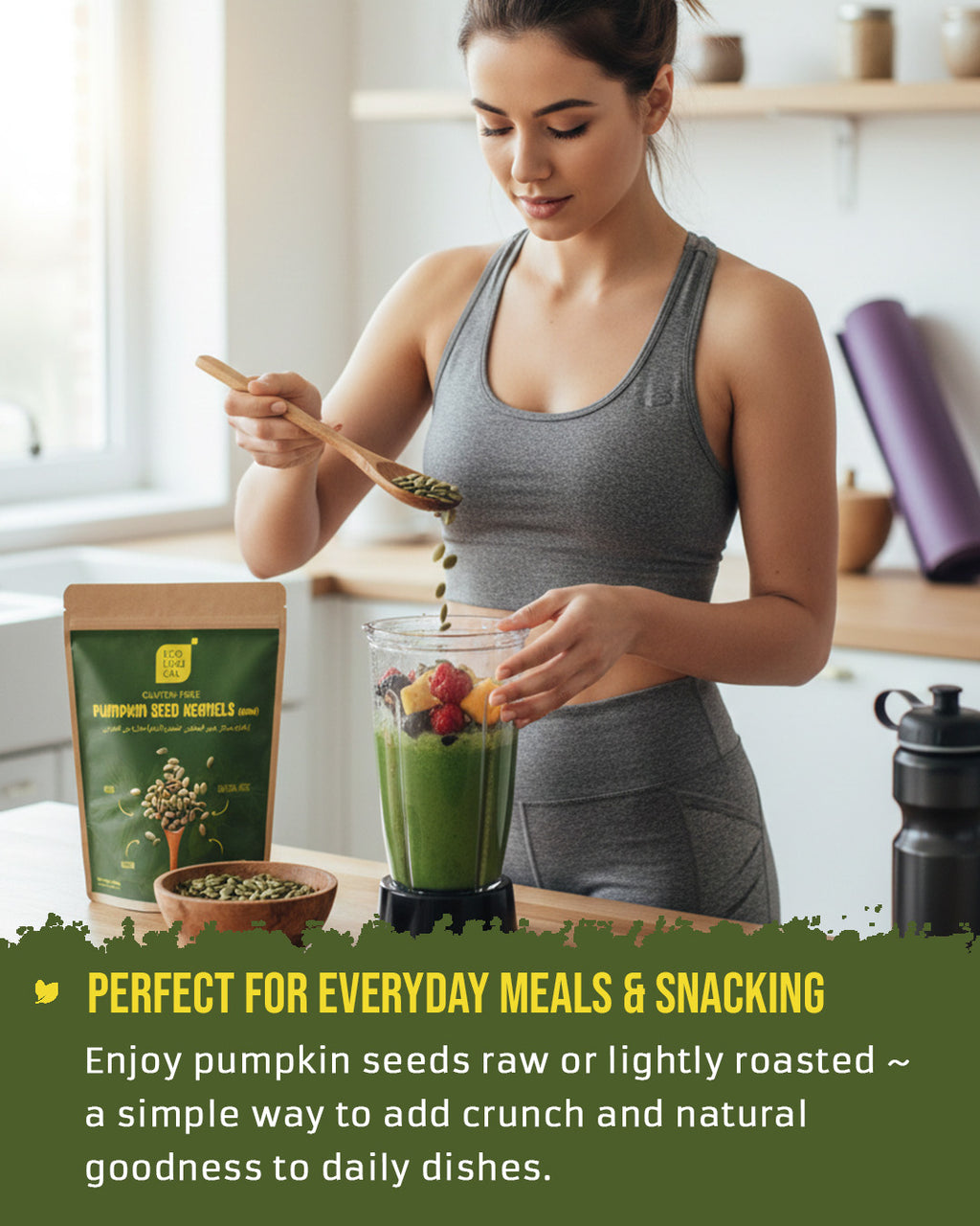 Whether sprinkled over salads, blended into smoothies, lightly roasted for snacks, or used in baking, these pumpkin seed kernels add texture, taste, and nutritional value ~ without additives or preservatives.