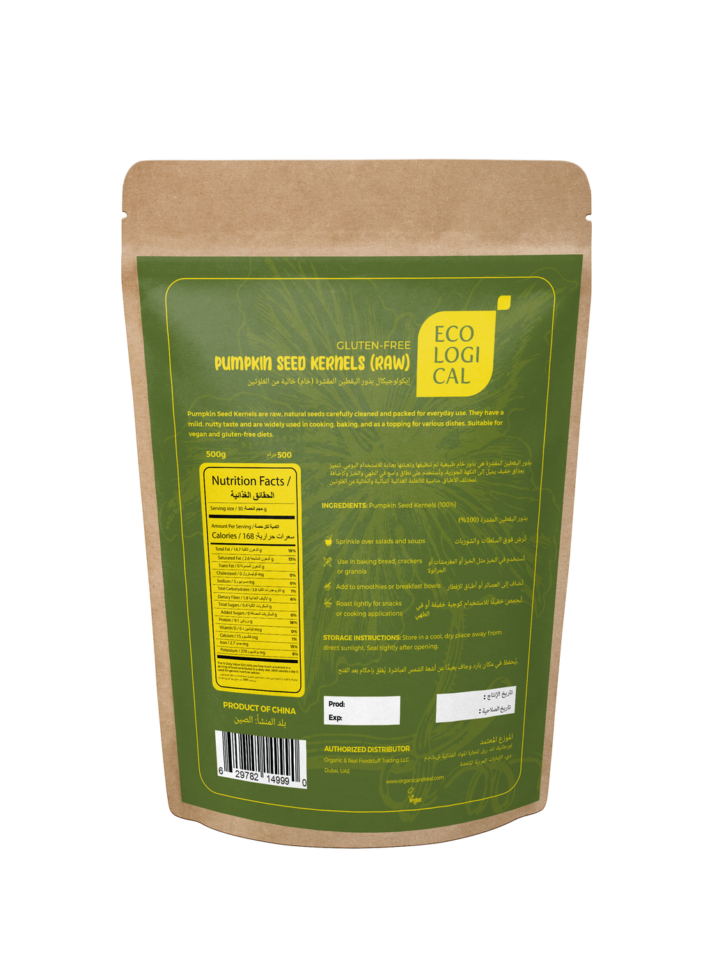Unlock the natural goodness of our Ecological Pumpkin Seed Kernels (Raw), a wholesome and versatile ingredient carefully prepared to support a balanced, everyday lifestyle. These premium pumpkin seeds are cleaned and packed with care to deliver freshness, quality, and natural flavor in every bite.